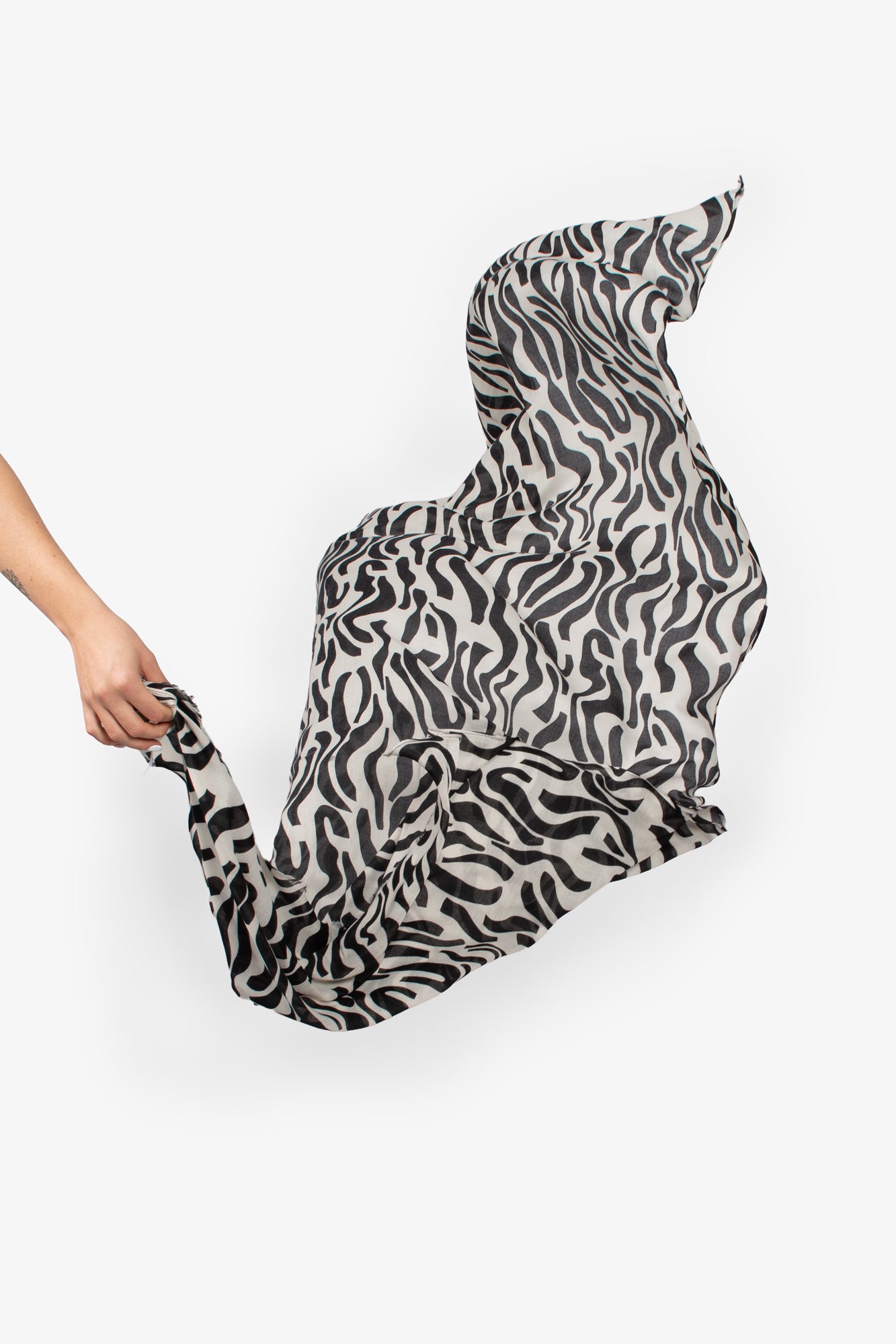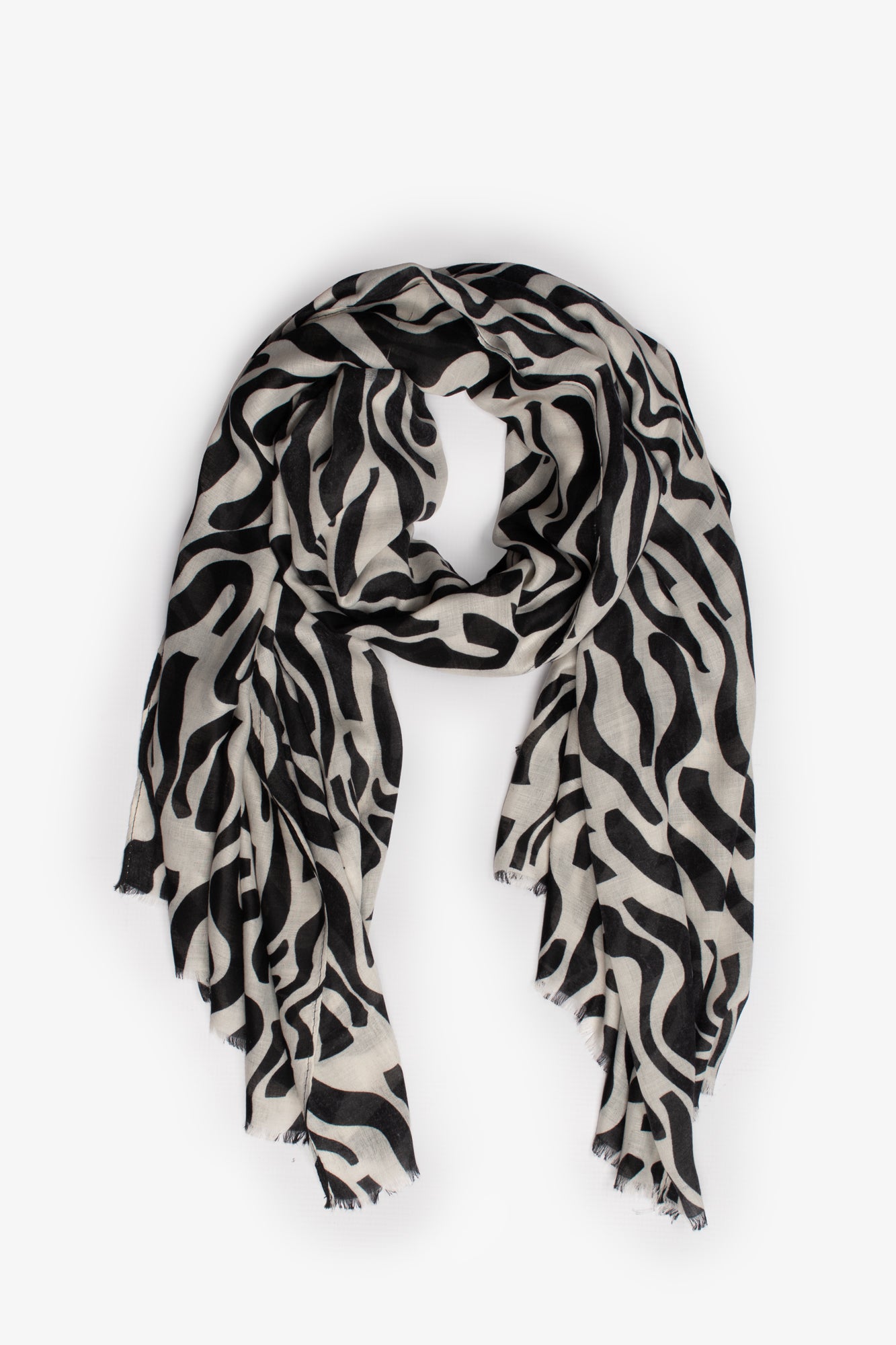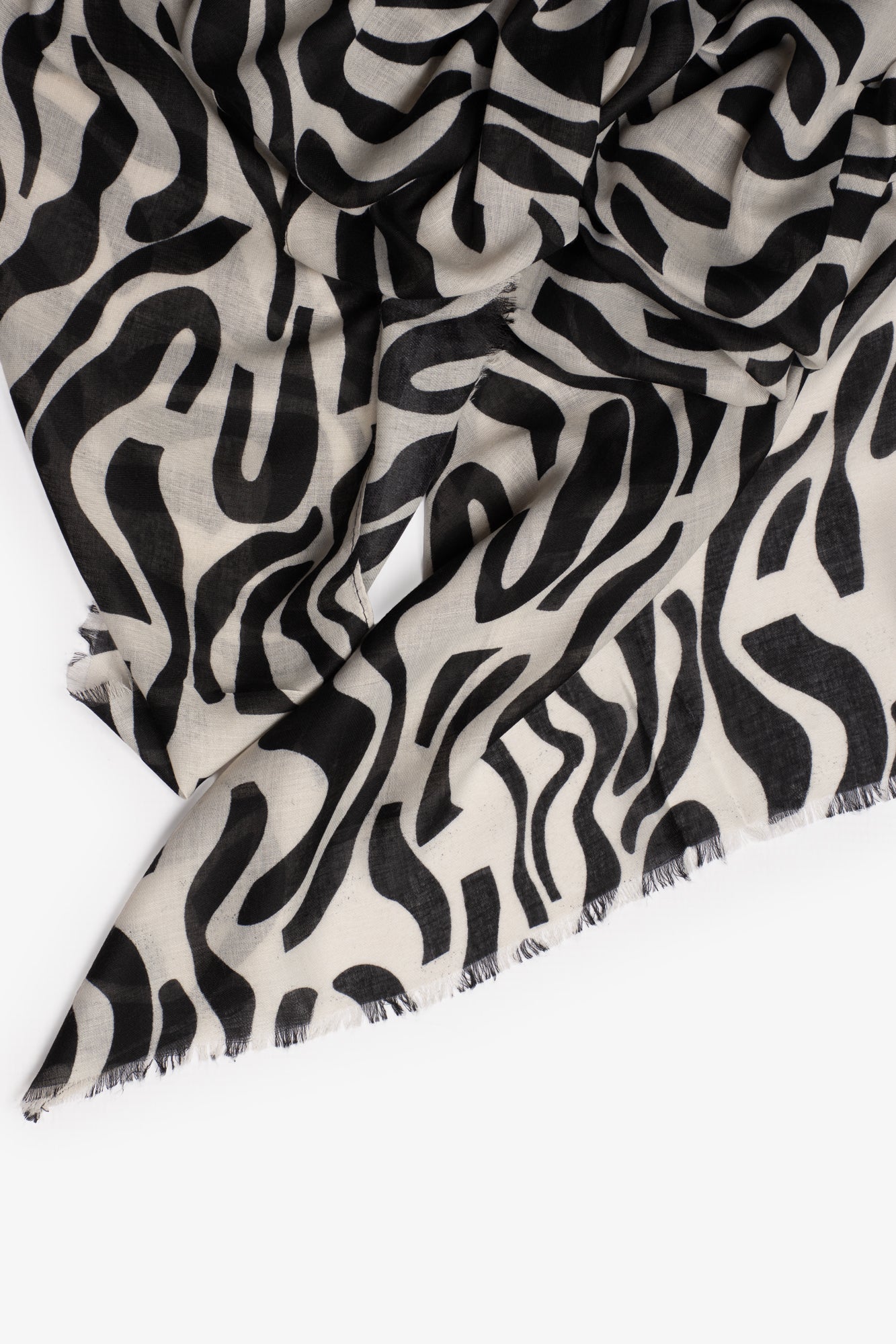Experience the delicate elegance of Voile Swirls and Waves scarf, featuring an abstract monotone print on a sheer base. This fabric offers a subtle interplay of light and texture, perfect for sophisticated designs that require a graceful, airy finish. Ideal for creating refined garments or stylish overlays that enhance any wardrobe with a touch of modern artistry.