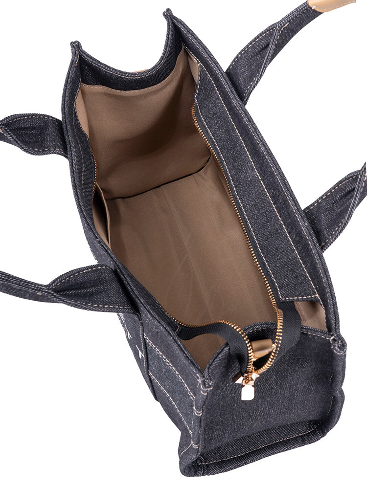 Team this Jo Borkett Denim Large Shopper with your everyday wardrobe to create a trendy and timeless look. Available in durable Blue and Black denim with tan trim and a neutral interior, this fabulous and spacious everyday accessory offers internal zip and slip pockets and can be carried comfortably using the detachable and adjustable shoulder strap or the stylish top carry handles for a carefree fun-filled day.