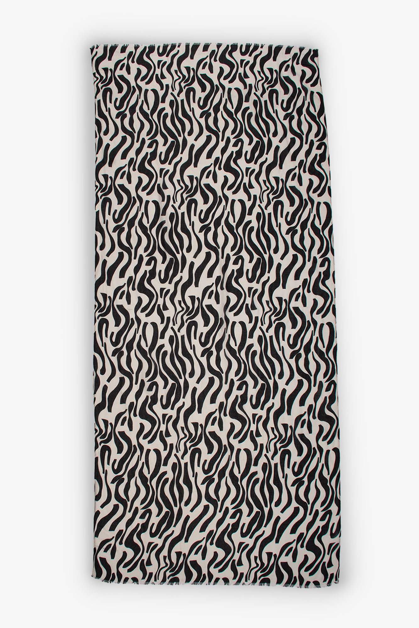 Experience the delicate elegance of Voile Swirls and Waves scarf, featuring an abstract monotone print on a sheer base. This fabric offers a subtle interplay of light and texture, perfect for sophisticated designs that require a graceful, airy finish. Ideal for creating refined garments or stylish overlays that enhance any wardrobe with a touch of modern artistry.
