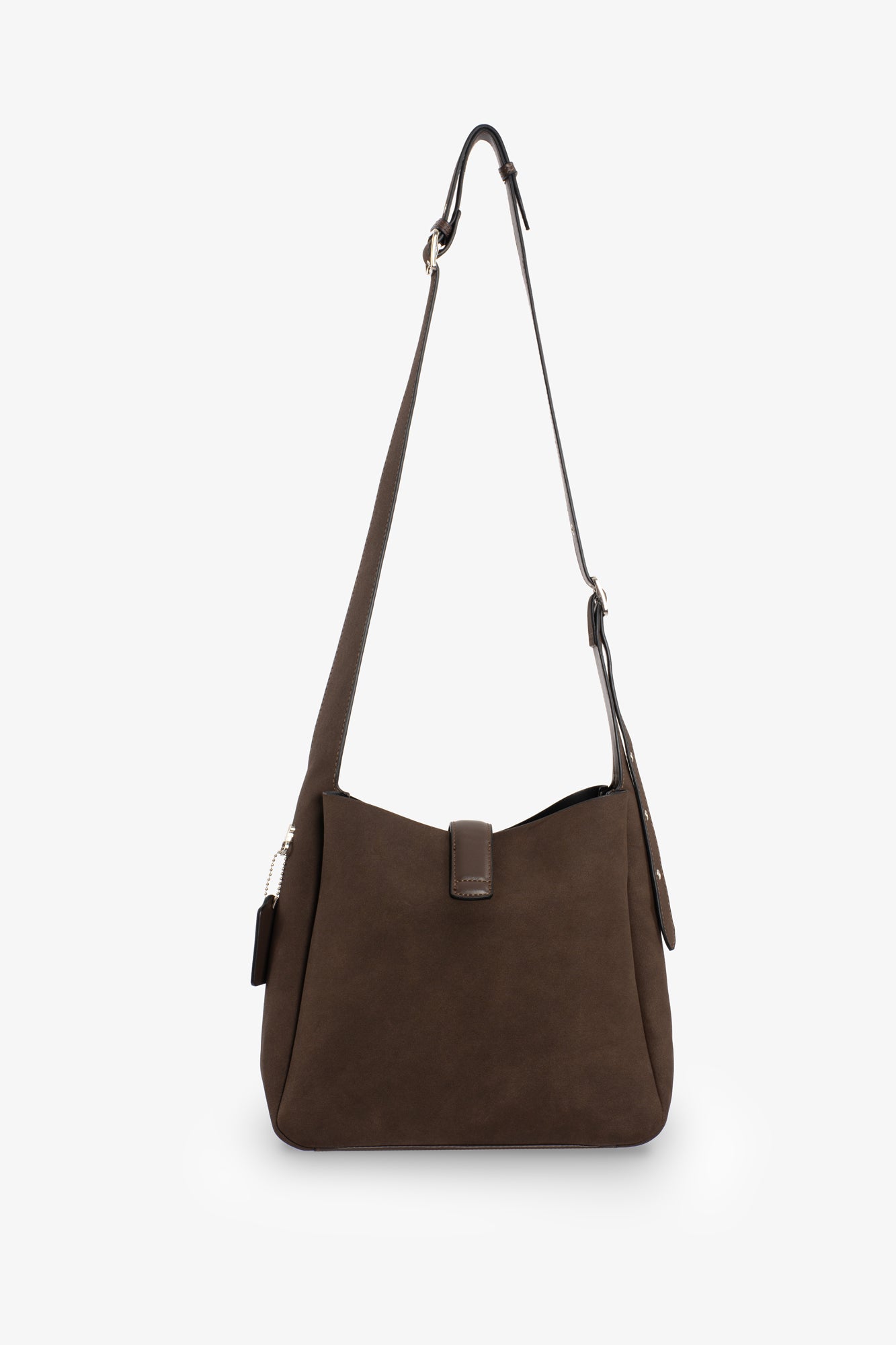 Featuring a secure turn-lock closure and an adjustable strap that extends up to 131cm, this bag can be worn comfortably over the shoulder or as a crossbody. The spacious interior offers ample room for your essentials, while its minimalist design ensures it pairs effortlessly with any outfit.