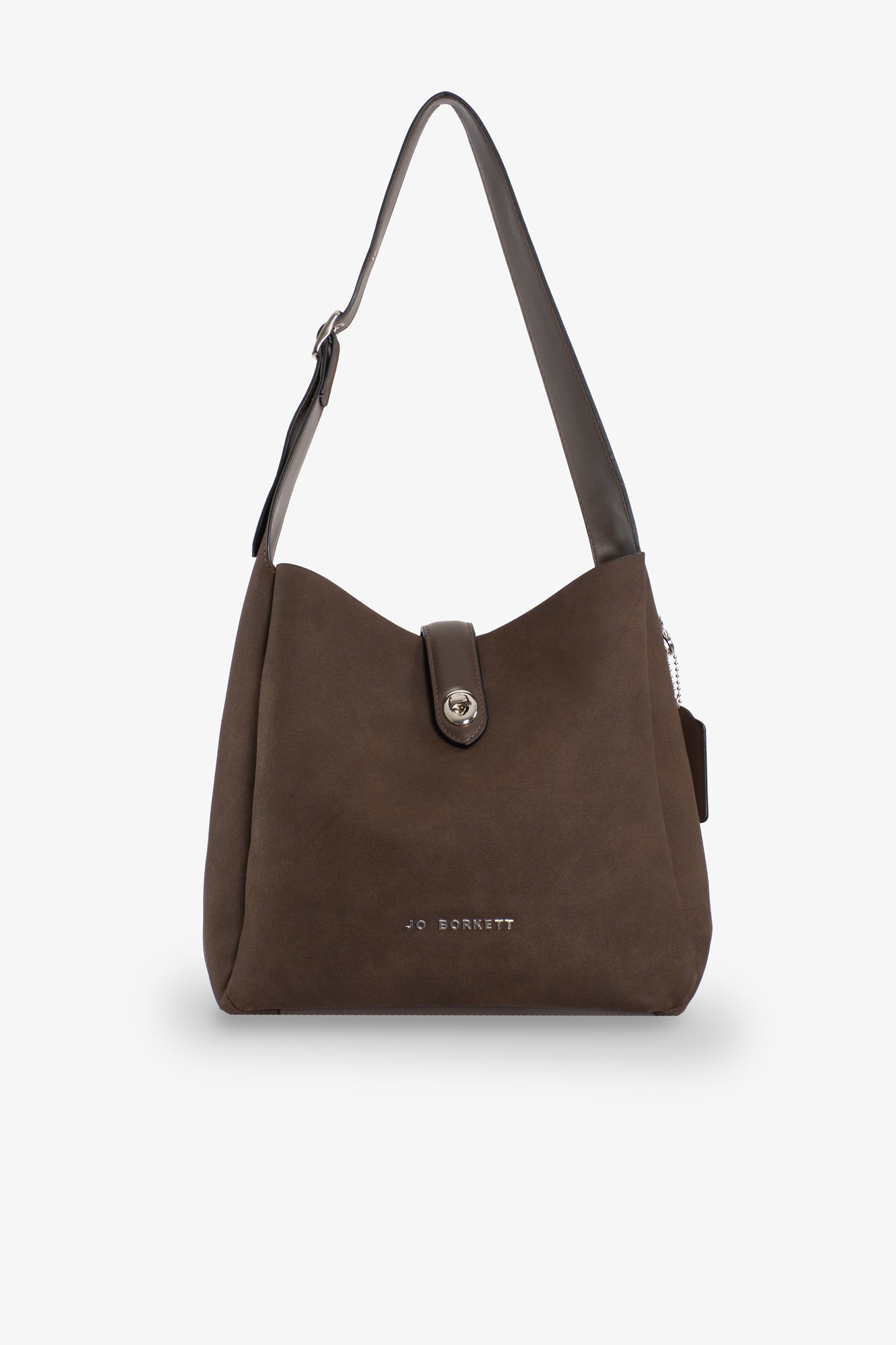 Elevate your everyday style with this timeless Jo Borkett shoulder bag. Designed in a rich chocolate brown hue, the bag combines soft PU construction with sleek detailing for a sophisticated finish. The structured yet relaxed silhouette makes it versatile enough for both work and weekend wear.