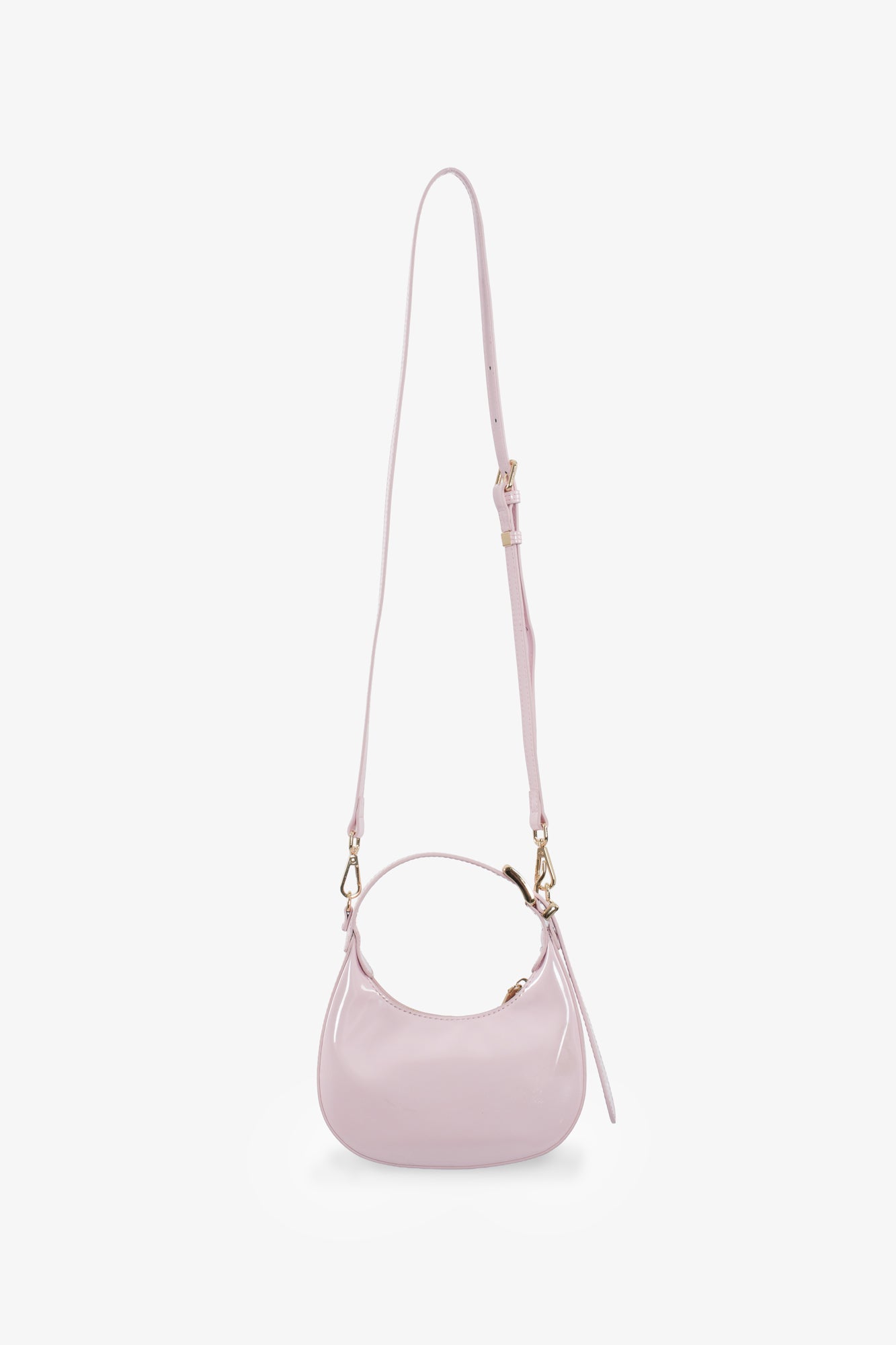 Elevate your style with The Mia in Pink, a patent leather scooped bag featuring a wide hand strap for comfortable carrying and elegant gold hardware that adds a touch of luxury. Versatile and chic, it also includes a shoulder strap for hands-free convenience, making it perfect for any occasion.