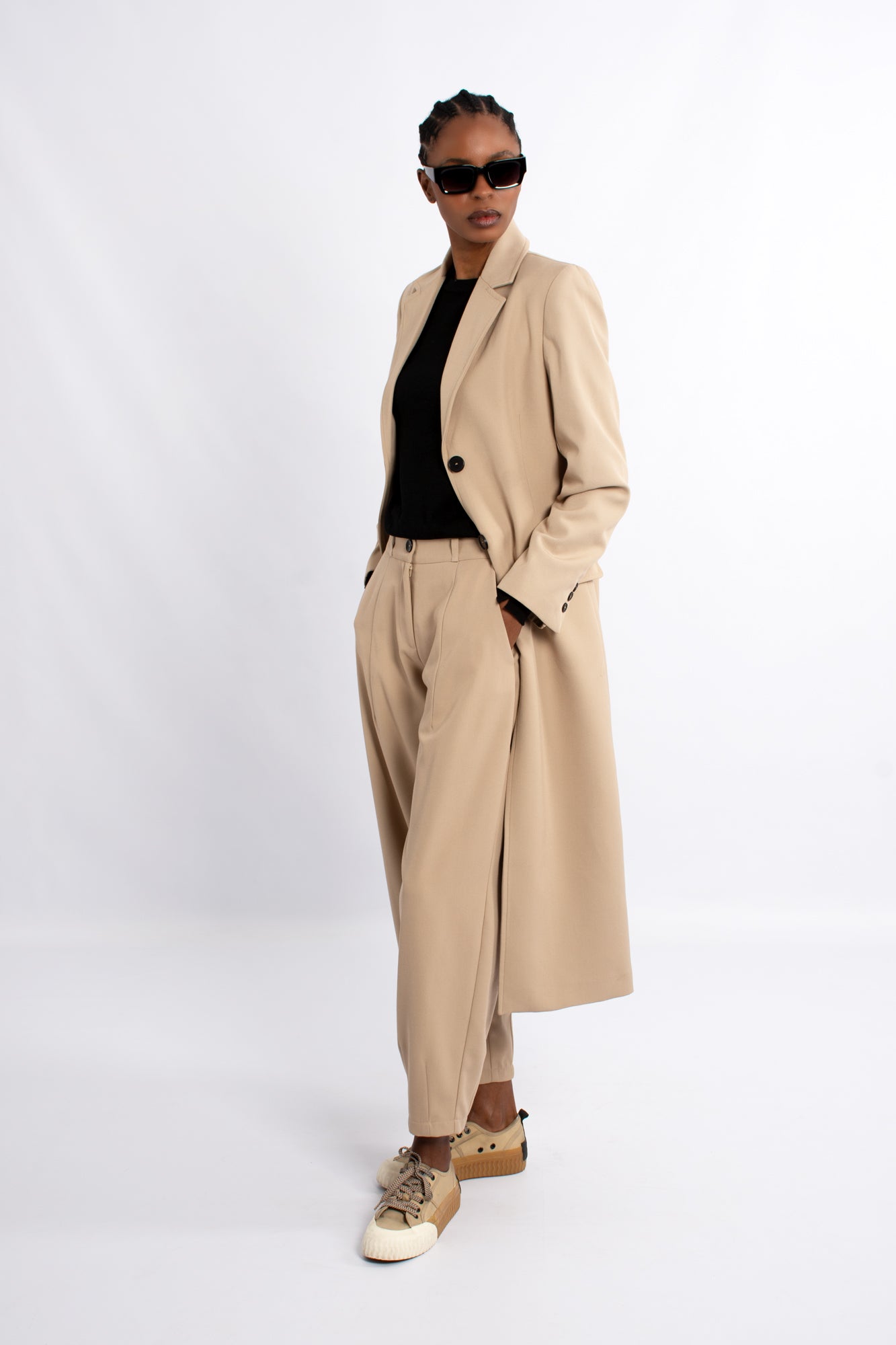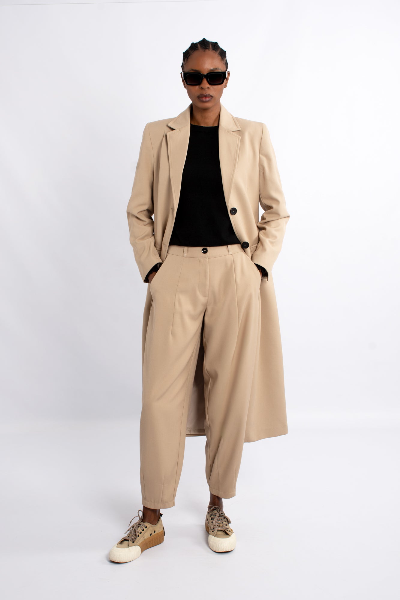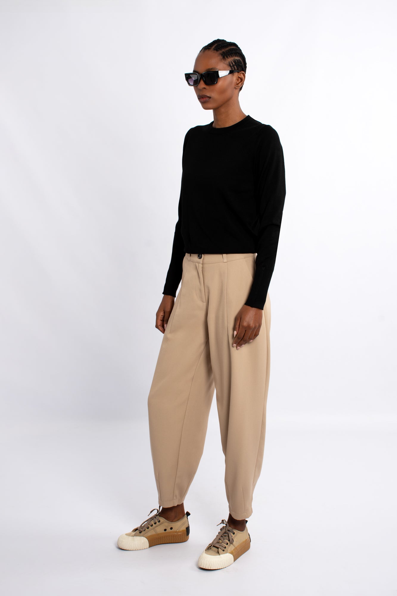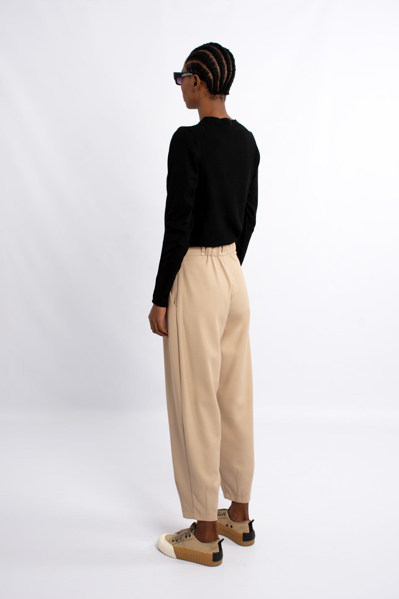 These twill barrel leg trousers combine tailored sophistication with modern comfort. Featuring a sleek fly front and an elasticated back, they offer a perfect fit that moves with you. Their classic silhouette updated with a contemporary twist makes them an essential piece for a stylish, confident look.