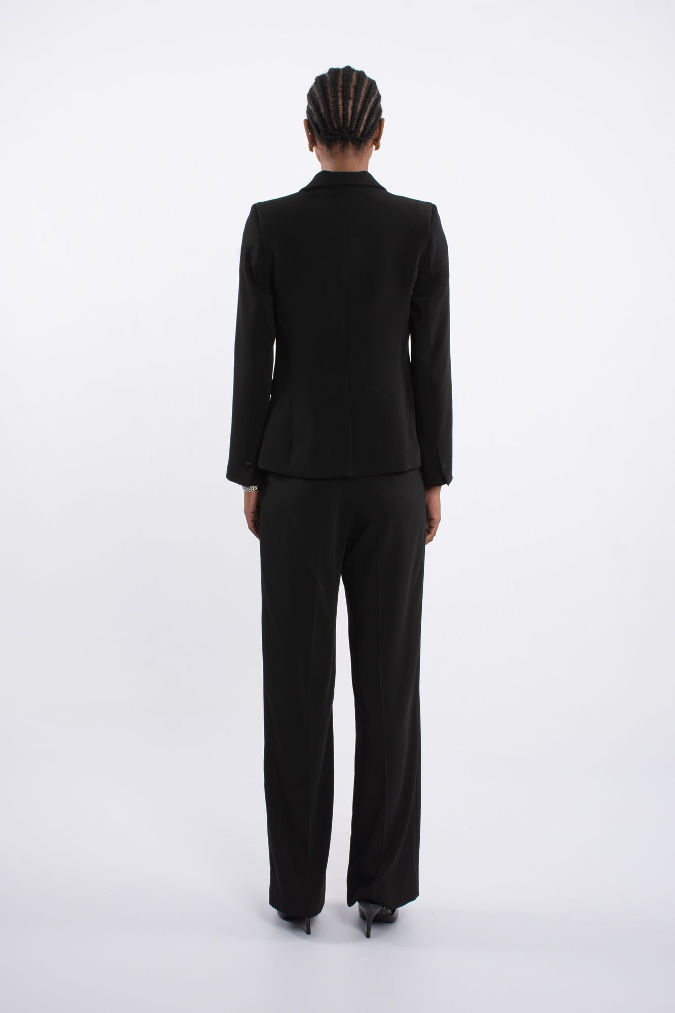 Tailored with a straight leg and a sleek fly front, these pants offer a sophisticated and put-together look. Complete your ensemble with the matching jacket for a polished finish.