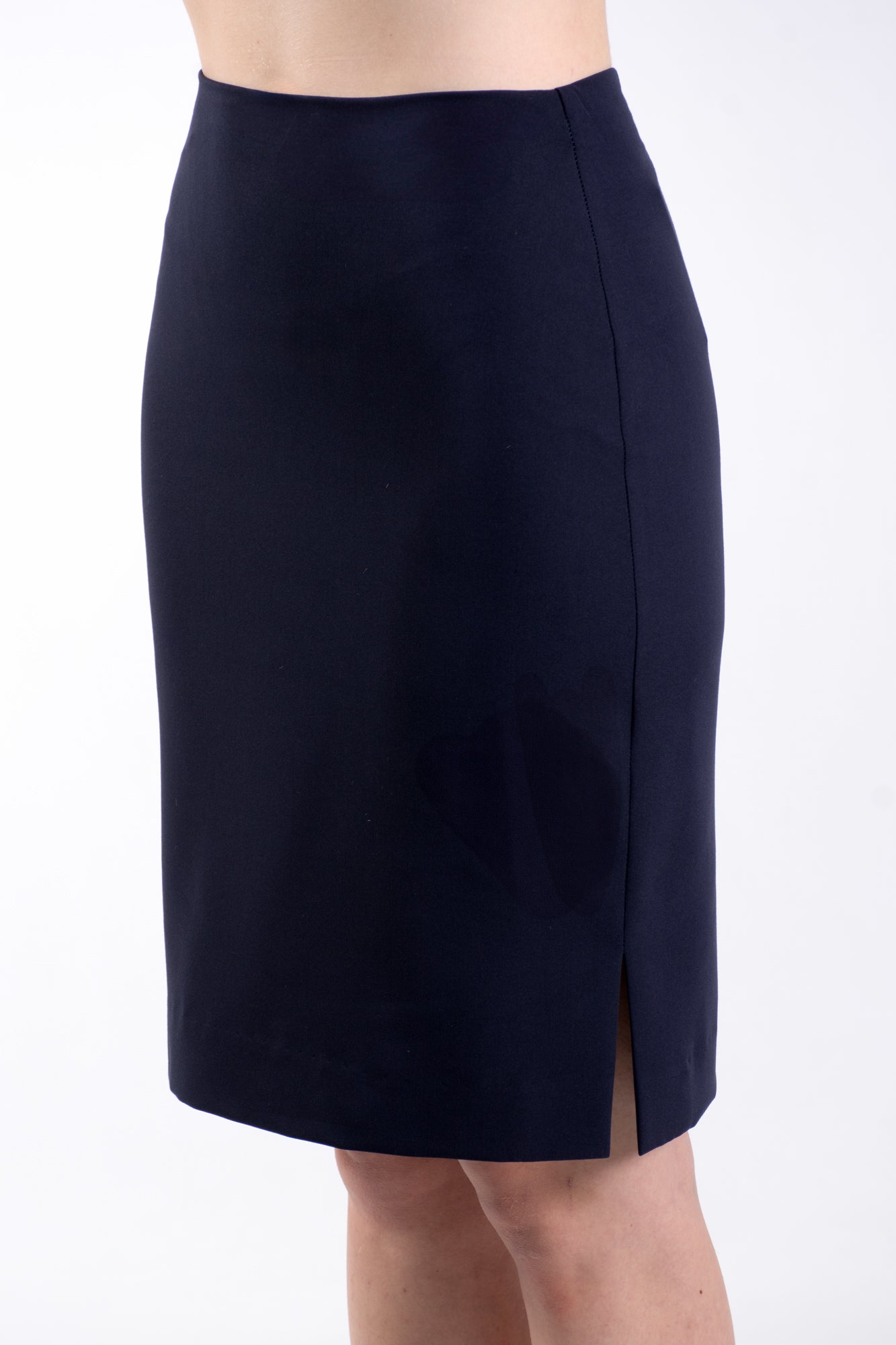 Classic skirt with invisible zip at back. Skirt is lined and has slit at left hand wearing hem.