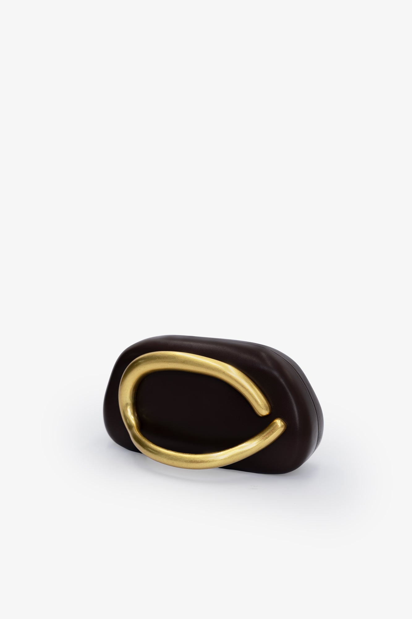 Sophisticated chocolate PU hardcover clutch featuring elegant gold-toned handle detailing. This elevated accessory combines structured design with luxurious accents, perfect for evening events or adding a polished touch to any ensemble. The rigid construction ensures durability while maintaining a refined silhouette that complements both formal and contemporary styles.
