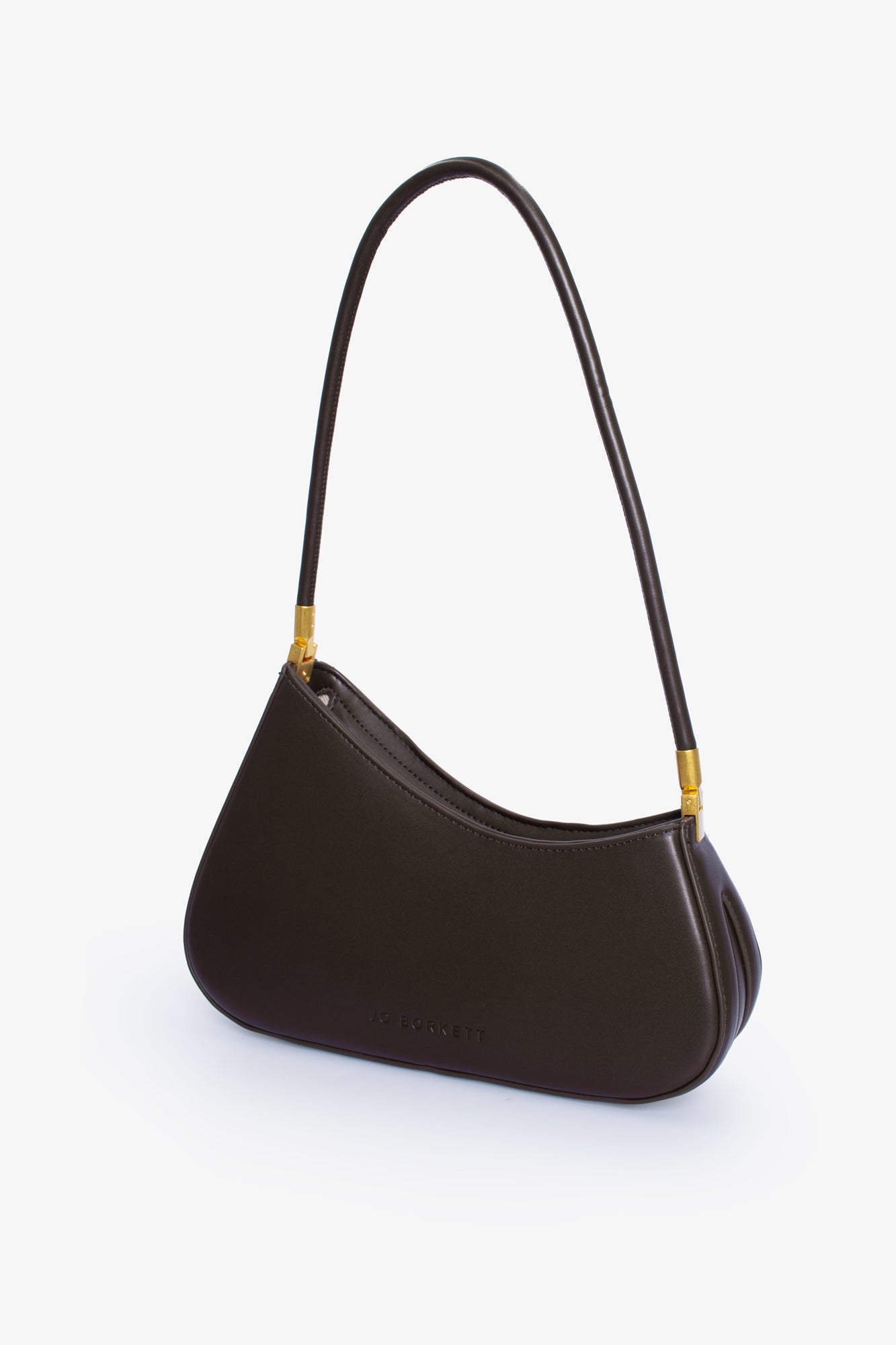 Crafted from 100% PU with a smooth, structured finish, the Gia Bag features an elegant shoulder strap and subtle gold-tone hardware for a polished touch. The embossed Jo Borkett logo adds a signature detail, keeping the design understated and timeless.